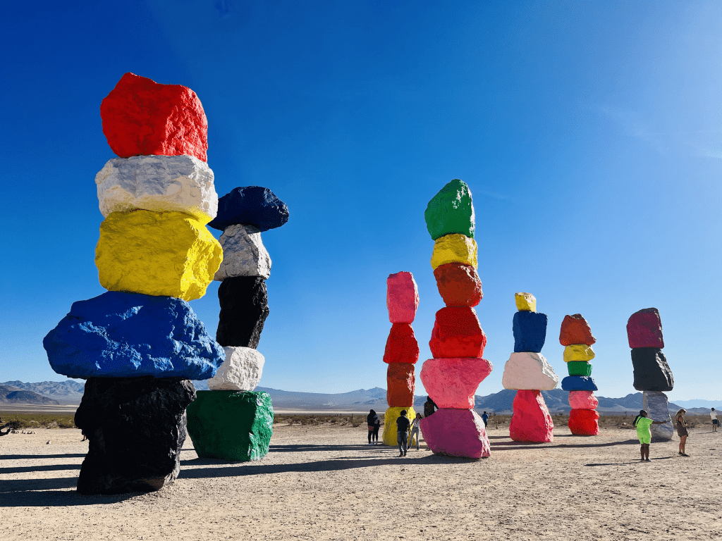 Situé à environ 10 miles au sud, cette gigantesque scultptures de pierre en plein milieu du désert créé par l’artiste suisse Ugo Rondinone. Endroit très instagrammable.