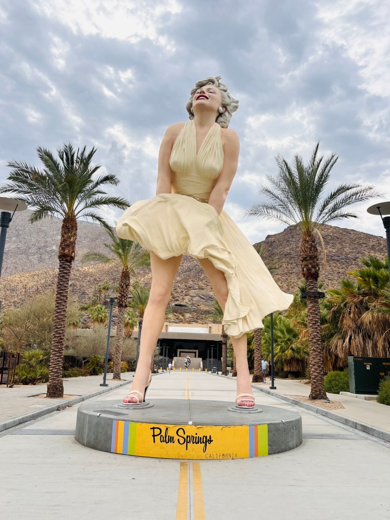 Nous poursuivons notre route en direction de Palm Springs, on sent un peu plus la richesse par ici. Vous allez y retrouver une statue géante de 26 pieds de la légendaire, c’est à l’âge de 22 ans qu’elle a été découvert au Charlie Farrell’s Racquet Club par l’agent artistique de William Morris, Johnny Hyde.