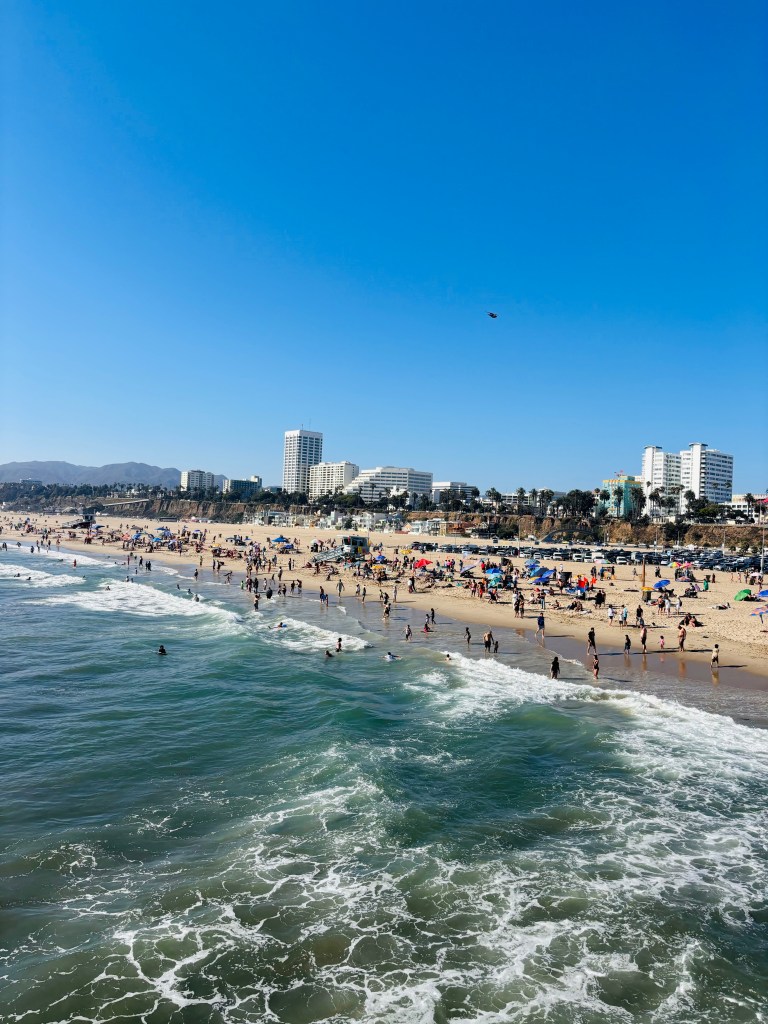 Par la suite nous avons décidés de nous rendre à la jetée de Santa Monica. Hyper fréquentée, surtout populaire car tout près du centre-ville et pour ses panneaux de la fin de la route 66. Des stationnements à 1$/heure tout près de l’aquarium, sinon plusieurs à 10-15$. Toujours aussi achalandé, la plage est vraiment super mais la circulation est tellement dense à Los Angeles que c’est assourdissant et cela rend la visite de la ville moins intéressante je trouve. Il y a tellement à faire dans la ville mais le temps peut manquer assez rapidement lorsque cela prend 1h, voire plus pour se rendre à chaque destination.