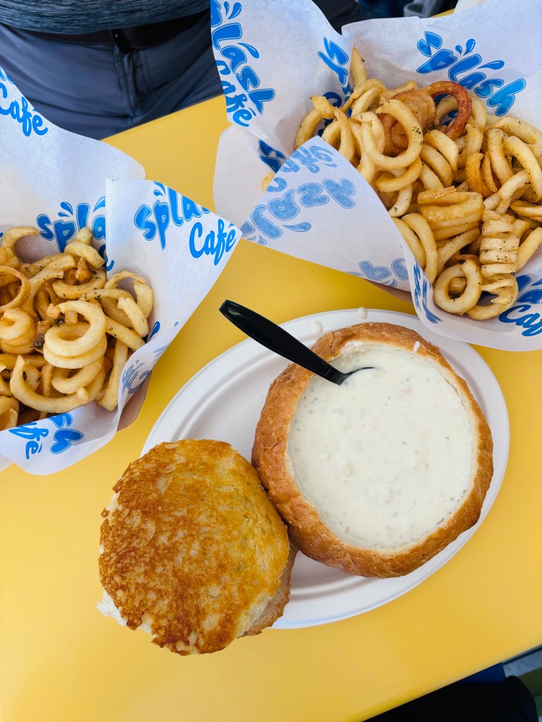 Petit arrêt à Pismo Beach, très jolie jetée, des petites boutiques et restos, on goûte à la fameuse chaudrée de palourdes au Splash Cafe, qui a un look un peu rétro, qui a ouvert les portes en 1989, vous ne pourrez pas passer tout droit, c’est assez fréquent d’avoir une liste d’attente. On reprend la route cette fois-ci en direction de Point Lobos State Reserve. On fait des petites randonnées le long de la mer, on a vu des loutres et des phoques à l’aide d’un télescope, une volontaire du parc offrait la possibilité aux randonneurs de l’utiliser. Dans le secteur, il y a la petite Carmel-by-the-Sea qui vaut le détour, qui se trouve dans la région de Monterrey.