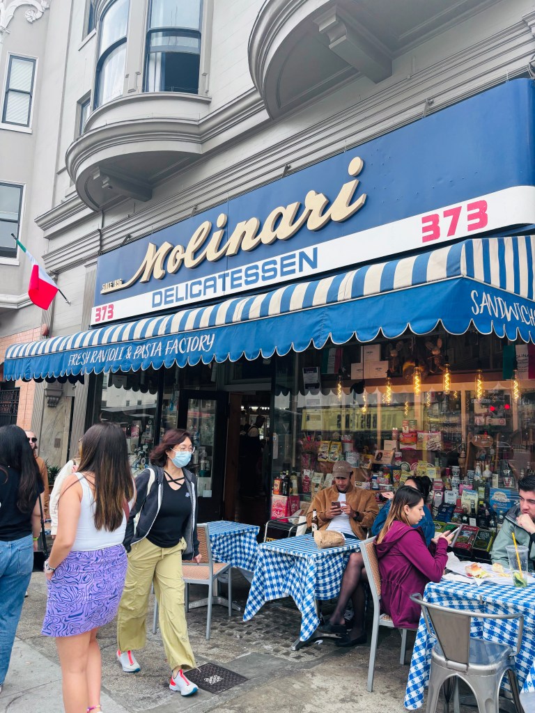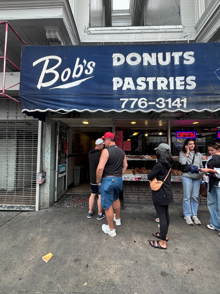 On casse la croûte au Delicatessen Molinari populaire pour ses sandwichs dans le quartier italien, ensuite à pied chez Bob’s Donuts, sur la rue Polk (attention il y a une autre succursale, mais il n’y avait pas le beigne en question. Connu pour ses beignes légendaires, comme le beignet aux pommes, OMG! C’était quelque chose! À retenir si vous passez par ici.