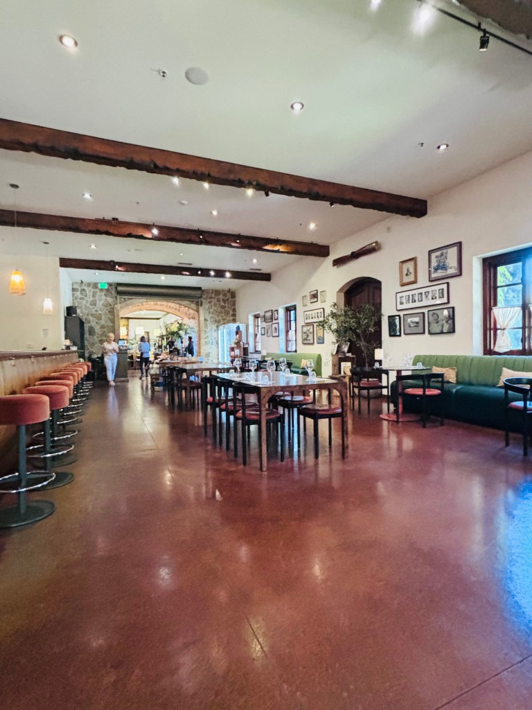 Nous avons opté pour Jacuzzi, Benziger, Russian River et Trione dans la région de Sonoma, nous n’avions pas trouvés de forfait similaire dans la région de Napa. Jacuzzi avait vraiment une jolie salle de dégustation avec un look vintage européen. Benziger un peu plus moderne et standard. Russian River, cela se passait sur la terrasse, vous pouviez déguster des tapas ou un autre type d’entrée par la même occasion pour accompagner votre dégustation. Trione était simple et moderne également. Nous avions entre 4 et 6 dégustations par endroit. J’ai eu ma dose amplement, je peux vous l’assurer.