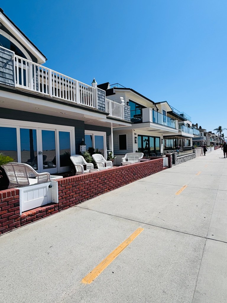 Un arrêt à Newport Beach pour notre dernière journée, le boardwalk, la plage de sable interminable, les maisons luxueuses. Comme petit chalet durant notre saison hivernale, cela me paraîtrait plus que reposant, mais attention les prix sont exorbitants!