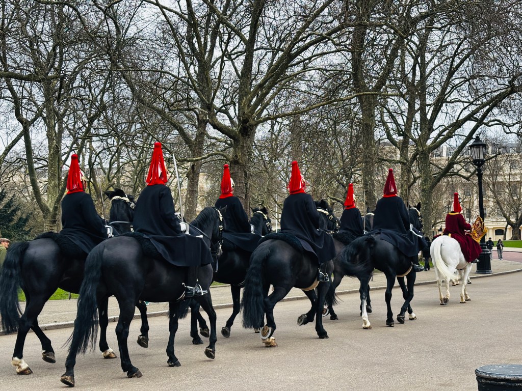 On se rend au Buckingham Palace pour la relève de la garde, un spectacle pour les touristes. Le palais est tout de même impressionnant. Beaucoup de touristes pour la période de l’année je trouve. Nous avons vu également une parade avec des chevaux et des gardes armés d’épées. C’était très cérémonial, mais impressionnant à voir.